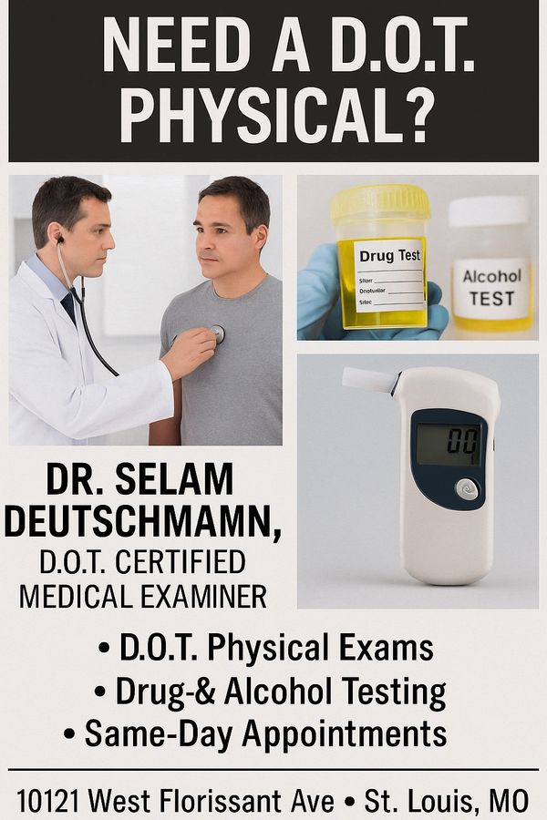 Dr. Selam Deutschmann, DC, is a certified medical examiner providing DOT physicals, drug, and alcohol screenings for drivers from both large and small companies, including major carriers such as Swift Transportation and Schneider National.