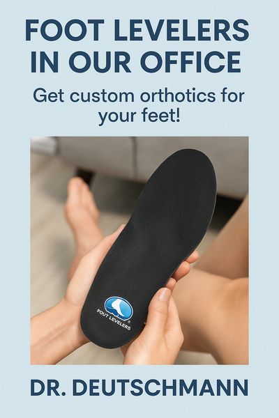 That’s why Dr. Selam Deutschmann, D.C. offers Foot Levelers Custom Orthotics — precision-made inserts designed to support the entire kinetic chain and keep your body in perfect alignment.